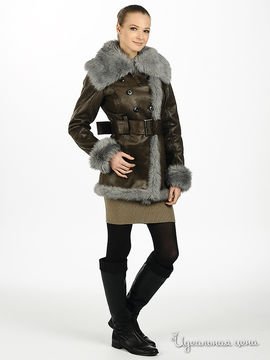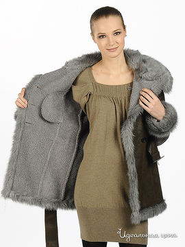 Дубленка Fracomina женская, цвет темно-зеленый / серый