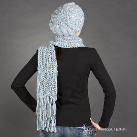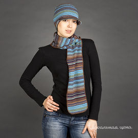 Комплект шапка с козырьком и шарф, сине-зеленый