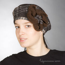 Берет с цветком, коричневый