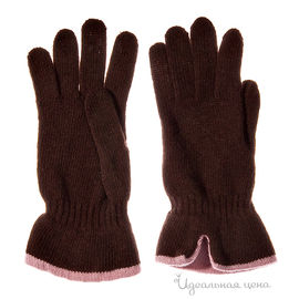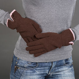Перчатки женские вязаные с контрастной отделкой, коричневые