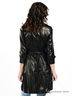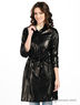 Детали: отложной воротник, застежка на пуговицы, четыре кармана, длинный прямой рукав с хлястиком на пуговице, на талии в шлевки продет пояс