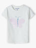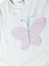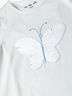 - футболка украшена вышивкой и аппликацией из двухсторонних пайеток в виде бабочки.