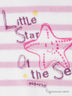 Потрясающая футболка из махровой ткани с рисунком - полоска. Округлый вырез горловины, короткий рукав, на плечах застежки на кнопки. Декорирована принтом на полочке.