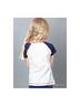 Футболка прямого силуэта. Контрастные рукава. Полочка декорирована аппликацией.
