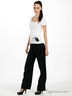 Даже официальному образу изысканная футболка придает нотку игривости, а самая повседневная одежда вкупе с ним выглядит празднично.