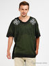 Детали: короткий прямой рукав, полочка декорирована оригинальным набивными рисунком и велюровым напылением