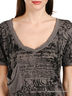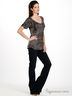 Детали: короткий прямой рукав, изделие декорировано оригинальным набивным рисунком и шнуровкой.