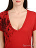 Детали: короткий прямой рукав, изделие декорировано оригинальным набивным рисунком и шнуровкой.