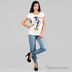 Стильная футболка с круглым вырезом горловины и короткими рукавами. По низу изделия широкий пояс, спереди оригинальный принт, декорированный стразами.