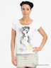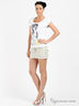 Детали: глубокий круглый вырез горловины с трикотажной бейкой, короткие рукава, оригинальный неброский принт на полочке.