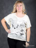 Детали: глубокий круглый вырез горловины с трикотажной бейкой, короткие рукава, оригинальный неброский принт на полочке.