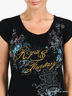 Детали: глубокий круглый вырез горловины с трикотажной бейкой, короткие рукава, оригинальный неброский принт на полочке.