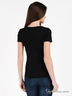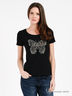 Стильная футболка с округлым вырезом горловины и коротким рукавом выполнена из эластичного трикотажа средней плотности. Полочка декорирована принтом со стразами. Яркий вариант на каждый день.