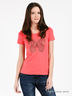 Стильная футболка с округлым вырезом горловины и коротким рукавом выполнена из эластичного трикотажа средней плотности. Полочка декорирована принтом со стразами. Яркий вариант на каждый день.
