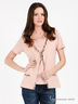 Модная футболка с эффектом двойки выполнена из трикотажа средней плотности. Округлый вырез горловины, короткий рукав с обработкой швом-закруткой. Два передних кармашка. Имитация кардигана декорирована рюшей. Отличный вариант для тех, кто любит комфорт и качество.