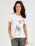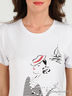Детали: короткий прямой рукав, полочка декорирована набивным рисунком и стразами