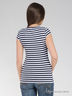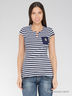 Футболка из полотна в полоску, с круглым вырезом горловины и короткими втачными рукавами. По переду застежка на пуговицах. Отличный вариант для Вашего гардероба.