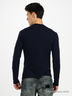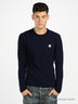 Трикотажная мужская футболка прямого покроя с округлым вырезом горловины и длинными рукавами. Спереди модель декорирована нашивкой с металлическим элементом.