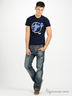 Трикотажная мужская футболка прямого покроя с округлым вырезом горловины и короткими рукавами. Модель декорирована стильным набивным рисунком.