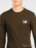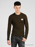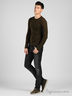 Трикотажная мужская футболка прямого покроя с округлым вырезом горловины и длинными рукавами. Спереди модель декорирована нашивкой с металлическим элементом.