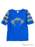 Отличная футболка свободного покроя с короткими рукавами, декорированные контрастными полосками и округлым вырезом горловины. Спереди модель декорирована ярким принтом.