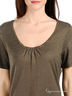 Детали: круглый вырез, короткие рукава, спереди присборено на резинку, украшена стразами