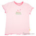 Детали: округлый вырез горловины, короткий рукав, край рукава и нижняя часть изделия обработаны оверлоком, полочка украшена аппликация