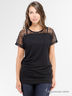 Футболка с короткими рукавами и округлым вырезом горловины. Модель выполнена из качественной ткани привлекательной расцветки. Изделие декорировано вставкой из кружева. Отличный вариант для создания модного образа.