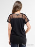 Футболка с короткими рукавами и округлым вырезом горловины. Модель выполнена из качественной ткани привлекательной расцветки. Изделие декорировано вставкой из кружева. Отличный вариант для создания модного образа.
