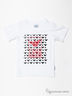 Футболка прямого силуэта с округлым вырезом горловины и коротким рукавом. Полочка украшена принтами.