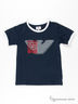 Футболка прямого силуэта с округлым вырезом горловины и коротким рукавом. Полочка украшена принтами.