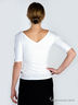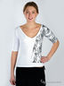 Повседневная приталенная футболка. V-образный вырез, короткие рукава, на полочке оригинальный принт.