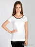 Повседневная футболка с короткими рукавами. Широкий круглый вырез, спереди контрастная прострочка, сзади разрез, завязывается на веревочки.
