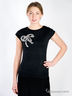 Легкая повседневная футболка. Короткие рукава, круглый вырез, сзади оригинальный разрез в форме банта, спереди украшена блестящей аппликацией из пайеток.
