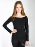 Мягкая футболка свободного кроя. Длинные рукава, широкий круглый вырез, полочка украшена черным ювелирным стеклом.