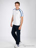 Эластичная футболка из дышащего, быстросохнущего материала. Круглая горловина. Короткие рукава. Декорирована белыми и розовыми полосами.