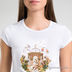 Тонкий легкий трикотаж, приталенный крой. Короткий рукав. Глубокий округлый вырез горловины. На полочке декоративный принт с мелкими стразами.