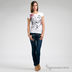 Тонкий легкий трикотаж, приталенный крой. Короткий рукав. Глубокий округлый вырез горловины. На полочке декоративный принт с мелкими стразами.