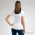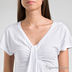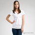 Футболка женская белого цвета. Тонкий легкий трикотаж. Приталенный крой. Короткий цельнокроеный рукав. Глубокий V-образный вырез горловины. На полочке драпировка с мягкими складками.
