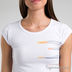 Футболка женская белого цвета. Тонкий легкий трикотаж, приталенный крой. Короткий рукав. Глубокий округлый вырез горловины. На полочке декоративный принт с мелкими стразами.