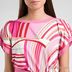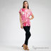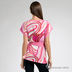 Футболка женская цвета фуксия. Тонкий, приятный телу трикотаж. Крой свободный, кимоно. Короткий цельнокроеный рукав. Неглубокий округлый вырез горловины. К изделию на линии талии пришит широкий пояс.