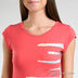 Тонкий легкий трикотаж, приталенный крой. Короткий рукав. Глубокий округлый вырез горловины. На полочке декоративный принт с мелкими стразами.