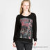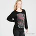 Модель «летучая мышь» с полукруглым вырезом, украшенная оригинальным принтом со стразами. Низ - широкая резинка, элегантно подчеркивающая фигуру. Широкий спущенный рукав, заканчивающийся широкой резинкой, придает блузе воздушность, а сборки и стразы на плечах делают эту модель поистине универсальным вариантом для любой фигуры.