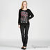 Модель «летучая мышь» с полукруглым вырезом, украшенная оригинальным принтом со стразами. Низ - широкая резинка, элегантно подчеркивающая фигуру. Широкий спущенный рукав, заканчивающийся широкой резинкой, придает блузе воздушность, а сборки и стразы на плечах делают эту модель поистине универсальным вариантом для любой фигуры.