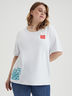 Футболка женская свободного кроя из мягкой хлопковой кулирки с небольшим добавлением лайкры от бренда Barmariska. Прямой силуэт с широкой горловиной и втачным рукавом. Дизайнерский принт выполнен методом шелкографии и дополнен декоративной брендированной нашивкой на правом рукаве. Цвет изделия может незначительно отличаться от цвета изделия на фото. Допустимое отклонение от размерной сетки +/- 1.0 сантиметр. Товар представлен в категории PLUS SIZE (БОЛЬШИЕ РАЗМЕРЫ).