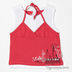 Детали: эффект двойки, округлый вырез горловины, лямки, завязка на шее, полочка декорирована аппликациями