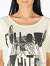 Трикотажная футболка с цельнокройными рукавами. На спине застежка на крючках. На полочке набивной рисунок.