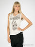 Классическая легкая футболка, выполнена из трикотажа высокого качества. Широкие бретели. Округлый вырез горловины. Классический прямой крой. На спине и полочке принт.