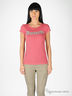 Приталенная футболка из меланжевого трикотажа. На полочке блестящий принт.