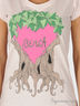 Футболка прямого силуэта из меланжевого трикотажа. На полочке аппликация.